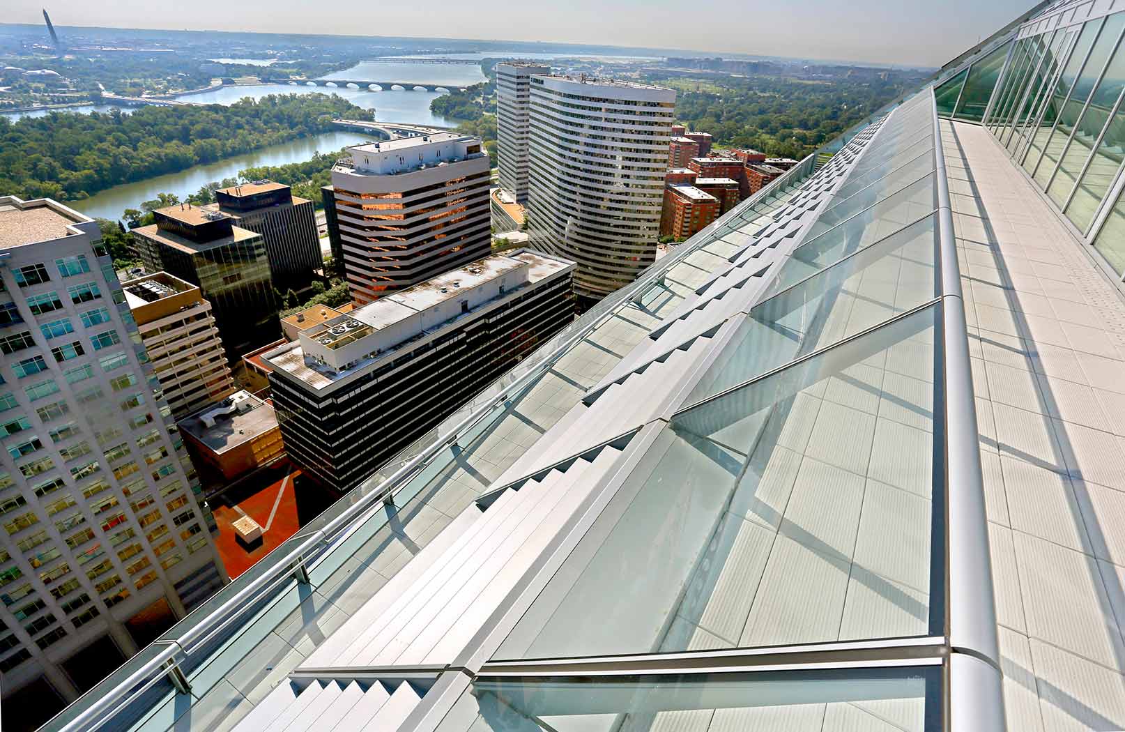 Our goal for 1812 North Moore Street was to create an exterior railing system that would be an extension of the glass curtain wall on the building.